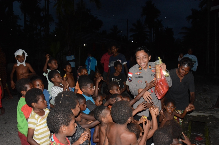Sejak pukul 17.30 WIT, personel Satgas membaur dengan warga dan anak-anak setempat. Mereka berbagi makanan ringan, berbincang santai, hingga berfoto bersama. Momen sederhana itu menghadirkan senyum kebahagiaan dan mempererat ikatan antara aparat keamanan dengan masyarakat.
