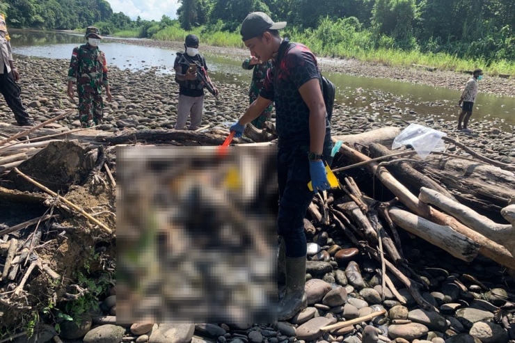 Saksi di lokasi, warga Kampung Hulu Atas, menerangkan bahwa dirinya melihat sesuatu yang mencurigakan di pinggir sungai sehingga melaporkan ke aparat keamanan setempat.