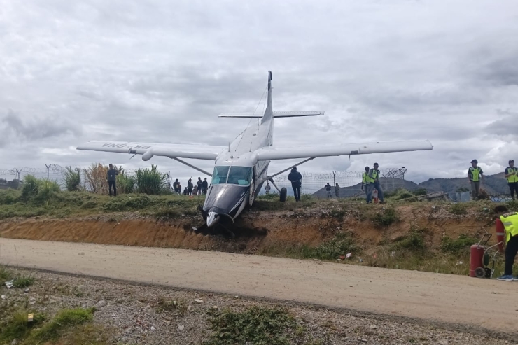 Jayapura, semuwaberita.com - Pesawat Smart Air Jenis Caravan C208 dengan nomor registrasi PK-SNA tergelincir di Lapangan Terbang Tiom, Kabupaten Lanny Jaya, pada Sabtu (11/10/2025) pagi. Pesawat yang mengangkut bahan makanan diketahui terbang dari Bandara Mozes Kilangin Timika menuju Tiom, Kabupaten Lanny Jaya.