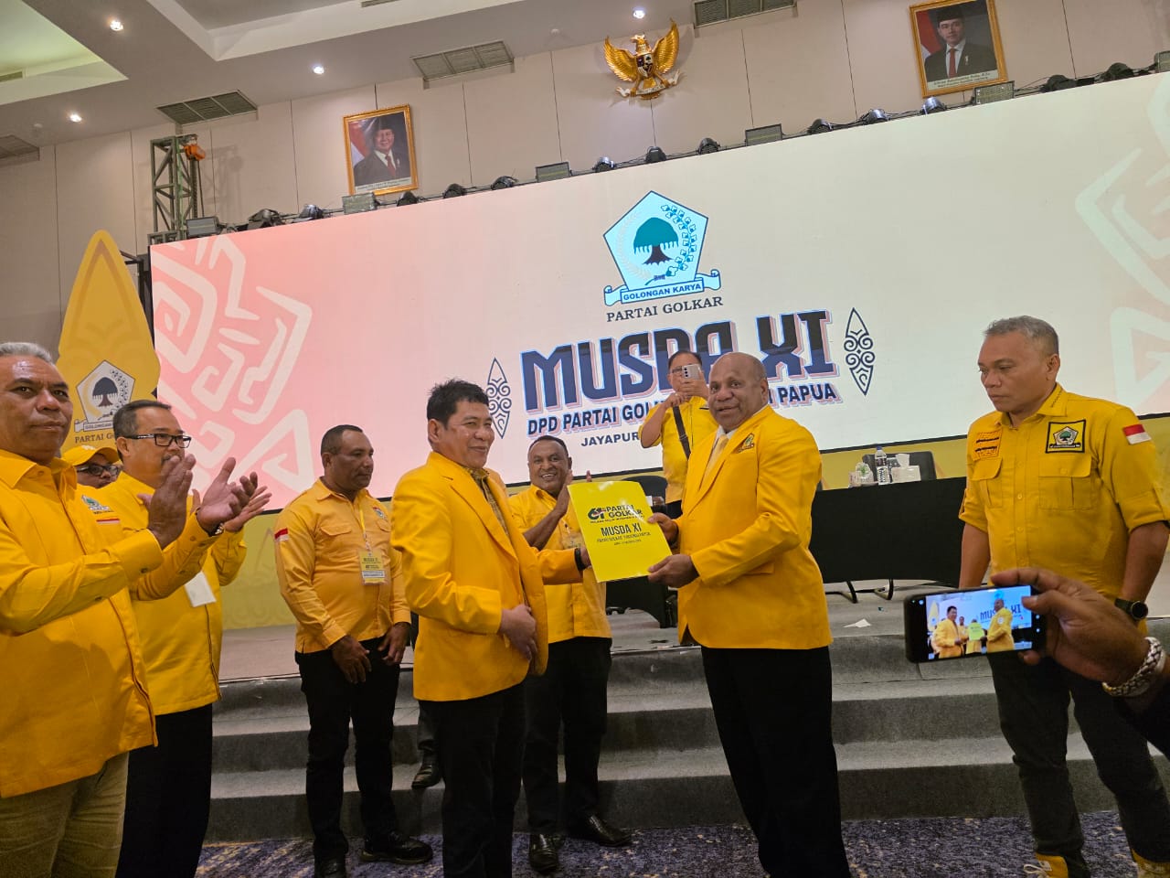 Ia juga menyampaikan apresiasi kepada DPP Partai Golkar atas kepercayaan dan bimbingan yang diberikan, serta kepada seluruh DPD kabupaten/kota se-Papua atas dukungan dan solidaritas yang kuat.