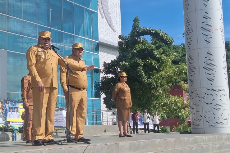 Apel gabungan berlangsung di halaman kantor Gubernur Dok II Jayapura, Senin (30/10/2025) pagi, dan diikuti oleh sedikitnya 3.000 dari total 8.000 ASN Pemprov Papua.