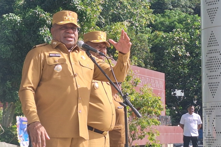 Jayapura, semuwaberita.com — Gubernur Provinsi Papua, Mathius Fakhiri, memberikan peringatan keras kepada Aparatur Sipil Negara (ASN) di lingkup pemerintahannya, saat memimpin apel gabungan perdana didampingi Wakil Gubernur Aryoko Rumaropen dan Pj Sekda, Suzana Wanggai, di halaman Kantor Gubernur Papua, Senin (20/10/2025) pagi.