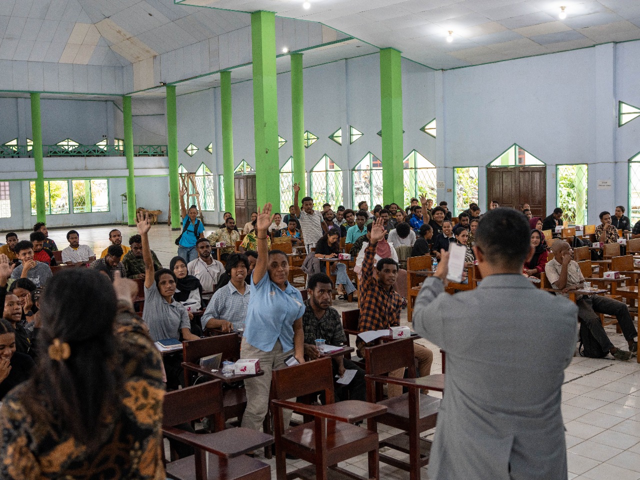Kegiatan yang diselenggarakan di Aula USTJ ini dihadiri oleh Wakil Rektor I, Dr. Suyatno, M.T., Wakil Rektor II, Dr. Alfini Baharuddin, M.T., Koordinator LPPM Bidang Penelitian Dr. Ir. Usman Tahir, S.T., M.T., serta para dosen dan 160 mahasiswa dari berbagai program studi.