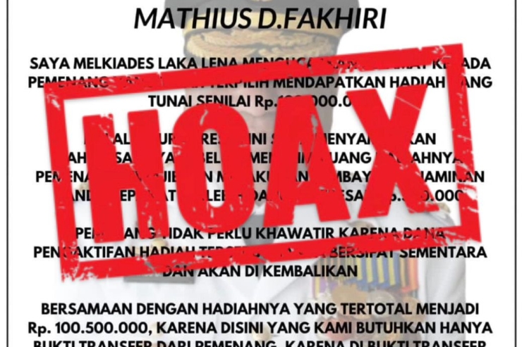 Jayapura, semuwaberita.com - Pemerintah Provinsi Papua menegaskan bahwa dokumen “Surat Pemenang Giveaway Mathius D. Fakhiri” yang beredar adalah HOAKS dan penipuan.