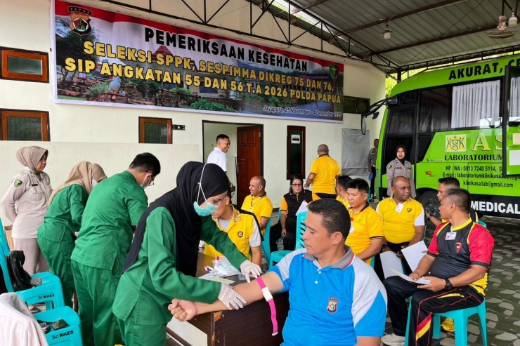 Jayapura, semuwaberita.com – Kepolisian Daerah (Polda) Papua melalui Bidang Kedokteran dan Kesehatan (Dokkes) telah melaksanakan tahapan penting dalam proses seleksi pendidikan pengembangan Polri T.A. 2026. Kegiatan berupa pemeriksaan kesehatan ini ditujukan bagi calon peserta SPPK, Sespimma Dikreg 75 dan 76, serta SIP Angkatan 55 dan 56. Kegiatan berlangsung di gedung Bid Dokkes Polda Papua, kamis (27/11/2025).